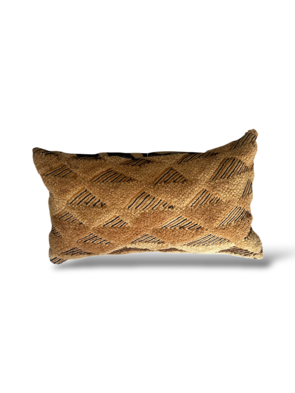 Transformez votre intérieur avec une pièce unique alliant élégance et histoire. Le coussin artisanal Elombé est une célébration du tissu Kuba, connu comme le “Velours du Kasaï”, une étoffe précieuse et emblématique de la région du Kasaï, en République Démocratique du Congo.