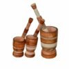 Ces mortiers, au-delà de leur utilité pour broyer épices, grains ou noix, sont de véritables œuvres d’art. Leurs finitions lisses et polies ainsi que les motifs gravés leur confèrent une esthétique élégante, idéale pour décorer vos espaces de vie. Les nuances de bois brun et ivoire, avec des bandes gravées délicates, apportent une touche culturelle et chaleureuse à toute cuisine ou salon, faisant de ces mortiers des objets de décoration à part entière.