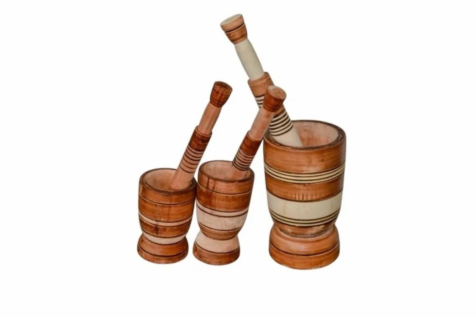 Ces mortiers, au-delà de leur utilité pour broyer épices, grains ou noix, sont de véritables œuvres d’art. Leurs finitions lisses et polies ainsi que les motifs gravés leur confèrent une esthétique élégante, idéale pour décorer vos espaces de vie. Les nuances de bois brun et ivoire, avec des bandes gravées délicates, apportent une touche culturelle et chaleureuse à toute cuisine ou salon, faisant de ces mortiers des objets de décoration à part entière.